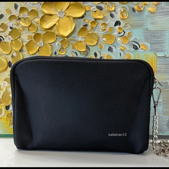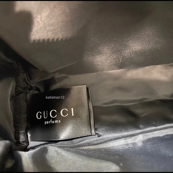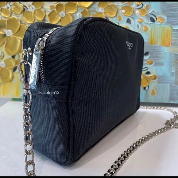 New Gucci Parfums Beauty Pouch To Crossbody BagBrand new, has never been usedAuthentic GWP from Nordstrom1 unbranded gunmetal/black metal chain approximately47”1 black polyester Gucci bag Approximately 8.75”L x 6”H x 3”WUse: clutch/pouch/cosmetic bag/makeup/travel/Toiletry items/crossbodyFits iPhone 11 Pro Max! Free gift with purchase!No returns, please ask questions before buyingPet and smoke free home